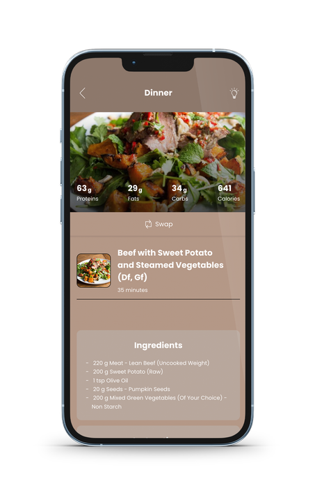 Meal plans fully customised to YOU & YOUR goals as well as your schedule and lifestyle which will be updated every month based on your progress. Choose from General, Vegetarian, Vegan, Gluten-Free, Dairy-Free and more meals!