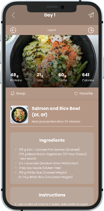 Meal plans fully customised to YOU & YOUR goals as well as your schedule and lifestyle which will be updated every month based on your progress. Choose from General, Vegetarian, Vegan, Gluten-Free, Dairy-Free and more meals!